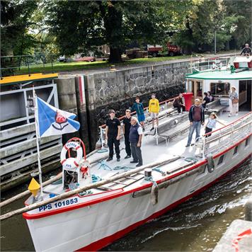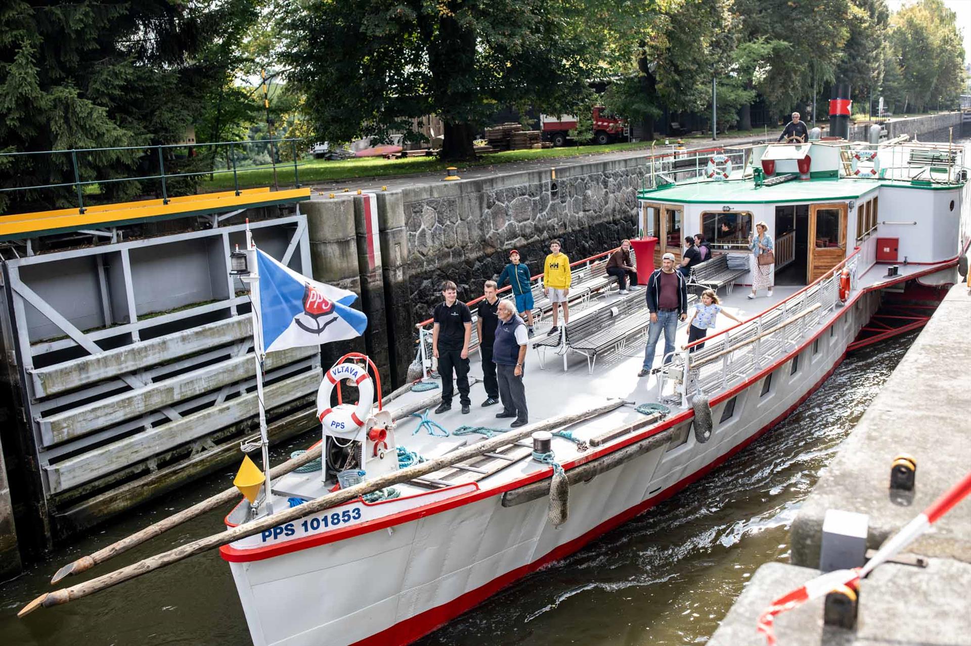 Dampfer Vyšehrad im Mittelpunkt des Geschehens